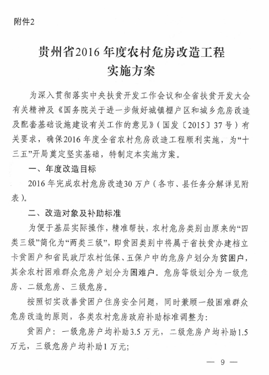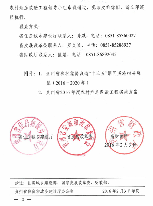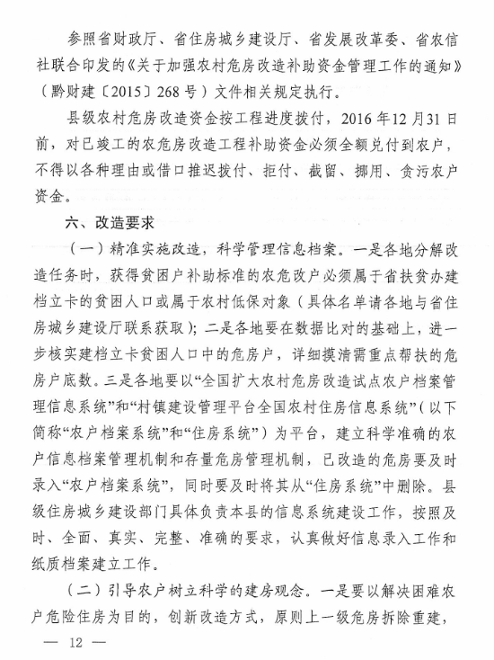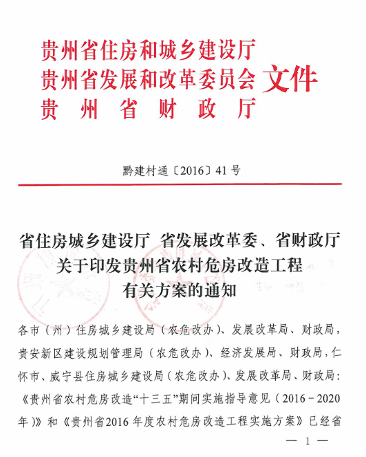 黔建村通〔2016〕41号关于印发贵州省农村危房改造工程有关方案的通知