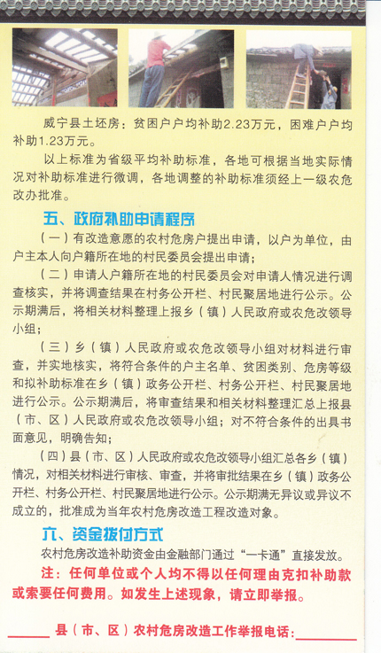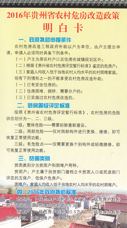 2016年贵州省农村危房改造政策明白卡