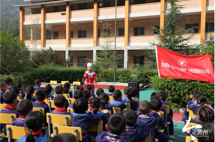 这支少数民族语言宣讲队来自黔南民族师范学院。据悉,为使党的十九大精神迅速传遍民族地区乡村角落,该院创新思路,发挥“民族师范”特色优势,利用“双语班”和少数民族学生社团优势,从8000多名少数民族学生中,优选32名布依族、苗族、侗族、水族、毛南族、瑶族等少数民族口语流利的优秀大学生,组成黔南民族师范学院“党的十九大精神”少数民族语言宣讲队,经过专家强化培训后,分赴边远少数民族村寨,用少数民族语言进行“双语”宣讲十九大精神。