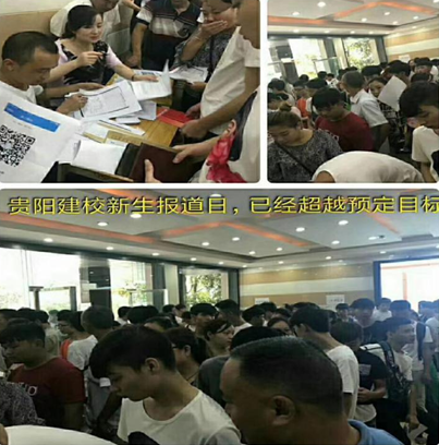 经过近四个多月的辛苦,学校秋季学期于2017年8月21日正式开学,校领导班子充满信心早布置早安排,8月21日召开了全校教职工新生报名工作部署大会,会上校领导和招就处分别对该项工作做了详细的安排部署,要求全校教职工均参与到新生报到工作中来,从新生接待、报到、分班到教室、宿舍的安排全部专人落实。8月22日是我校的新生报到日,当日新生报名人数创历史新高达600人之多,经现场资料审核,最终对符合报读贵阳建校的新生510人给予报到入学。对其它不符合条件(初中以下学历、没有初中毕业证、中考成绩较低等各种情况)的90名前来报读的学生取消了就读资格。