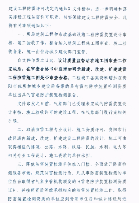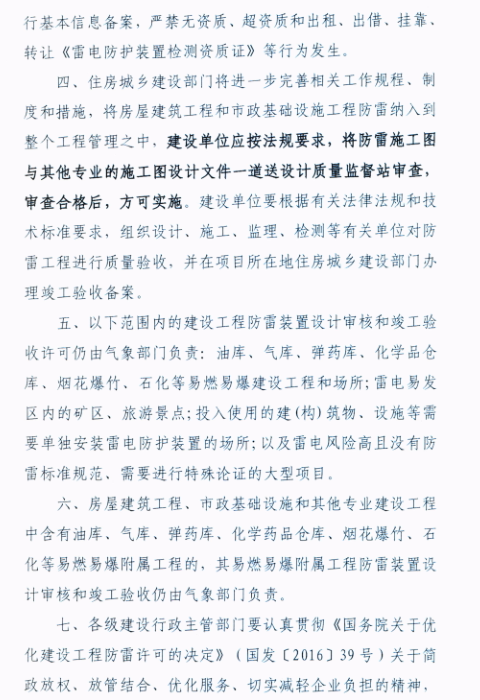 关于贯彻落实优化建设工程防雷许可相关工作的通知
