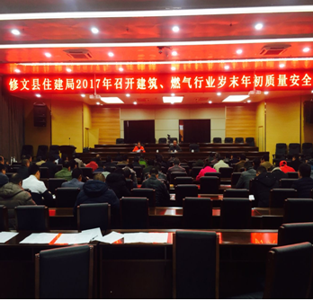 为做好我县建筑工地、燃气行业岁末年初相关工作,防止质量安全事故的发生,预防刑事案件造成经济损失,确保我县建筑、燃气行业安全生产形势的稳定,修文县住建局结合建筑、燃气行业质量安全生产具体情况,于2017年12月11日组织召开了修文县2017建筑、燃气行业岁末年初相关工作会议,全县在建工地参建各方参加了会议。